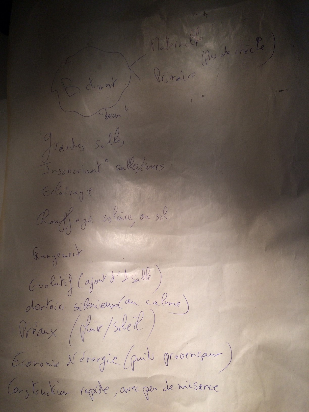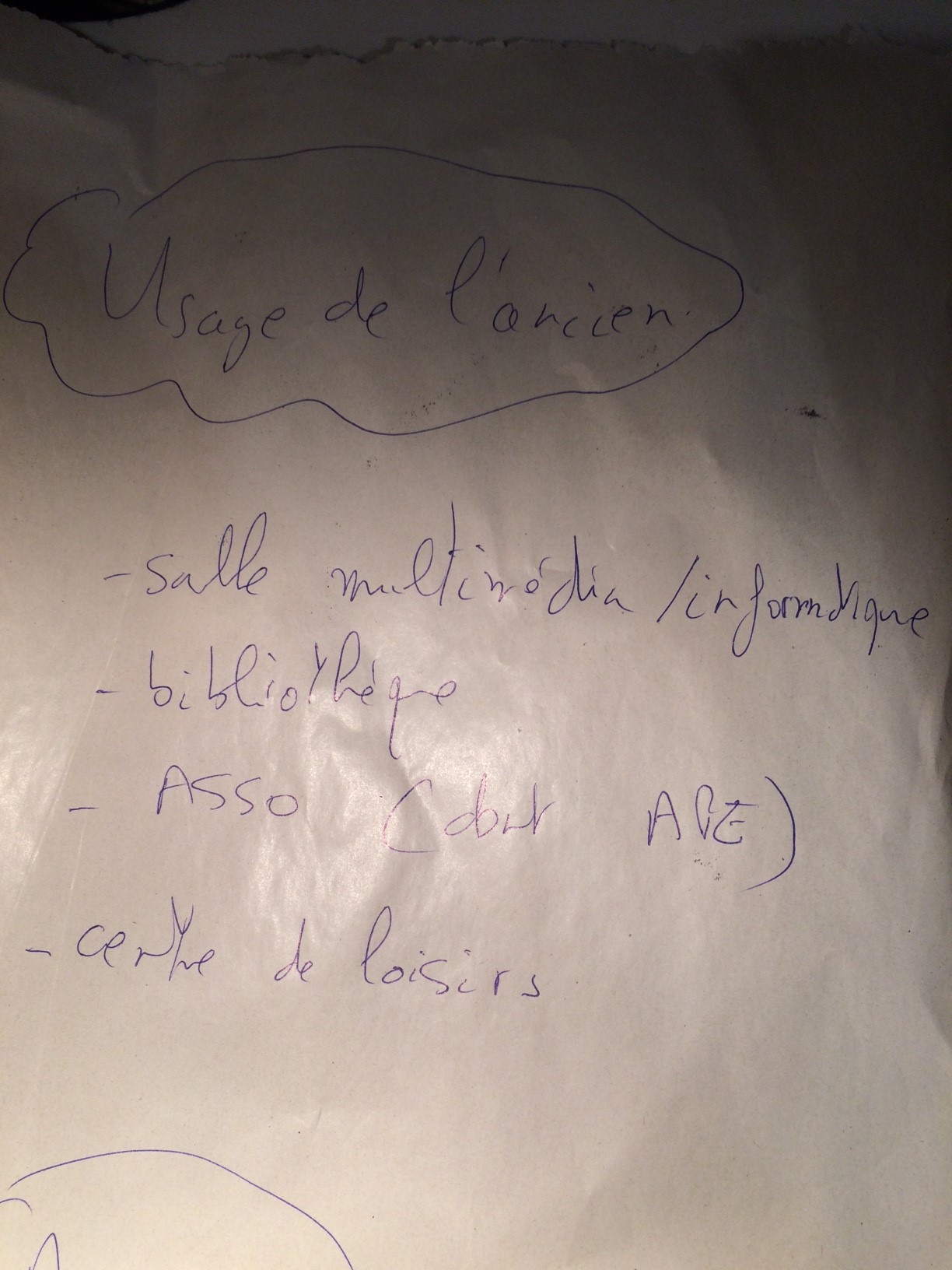 Étant donné que l'école actuelle était à l'origine un hôtel, que les salles et les espaces n'ont pas été conçus pour une école, que les salles de classe comportent de nombreux poteaux, construire la nouvelle école à coté de l'ancienne, et dédier le bâtiment existant à des activités périscolaires, culturelles, associatives, notamment l'APE.